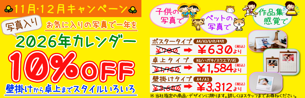 2025年11月1日 写真入りカレンダー10%OFFキャンペーン12月末まで!!